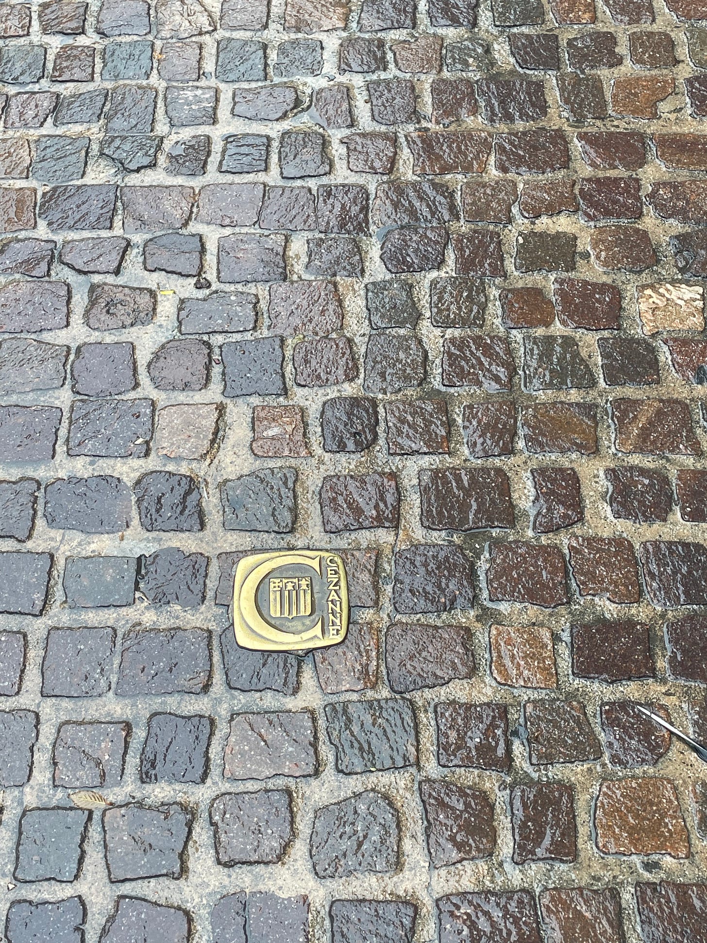 The deluge outside turned into a mizzle. With my clothes somewhat dried, I walked out of the cathedral’s wooden portals and noticed between my feet a small plaque that had “Cézanne” written on it. It was one of several breadcrumbs scattered across the city to mark the areas frequented by the artist, the paths he took, and locations of note. A delightful egg hunt.
