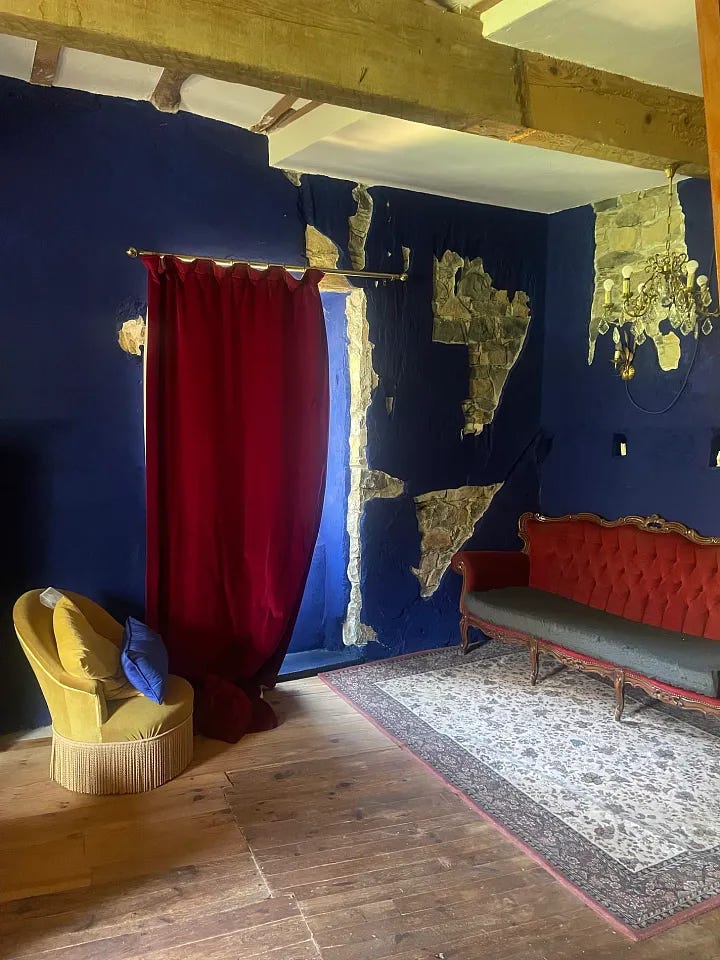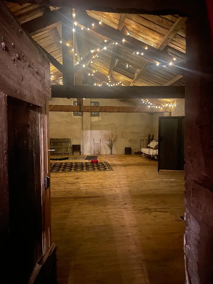 The inside of the Mill was matryoshka-like, with endless doors successively leading to new rooms and experiences. I suspected floors were hiding between the four floors. The owner, Nathalie, is an interior designer, and her expert hand moulded this sizeable 400-year building into a place intended to inspire its inhabitants to think, write, read, or stretch in each communal space. Every room housed various forms of art, with desks to write on, finely upholstered couches lined with cushions to allow for comfortable reading (or, in one case, to build a pillow fort), and ample areas to meditate, breathe, think or overthink atop woven rugs and squashy mats.