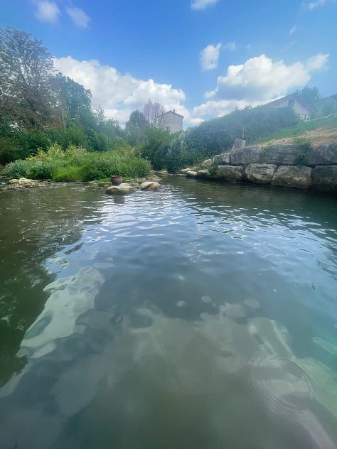 I found relief by escaping to the waterfall and standing on the slick rocks under the rapids, where the gushing force washed away the sticky sweat concealing the pain and fatigue that followed me to France. The freezing water gave me permission to audibly and enthusiastically curse each morning before asking the torrents to absolve me of anger, grief, worries, and anxieties buried deep within me. In the cooling evenings, I sent my wishes and gratitude down the stream, asking it to tell anyone and everyone about my desires. Then, I would slosh through the grass back to the Mill to pick up a Cornetto and join its merrymakers.